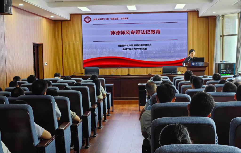 第105期“明道信道”宣讲。学院党委书记李友芝做师德师风专题法纪教育宣讲,学院全体教师参加学习。