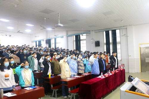 “我们是五月的花海……”在组织部干事唐志远的带领下,同学们一起唱响团歌《光荣啊,中国共青团》。雄浑激昂的声音,将气氛推向高潮,展现出机械学子们朝气蓬勃的一面。随后,全体参会人员在机械工程学院团委绅士仓库 会团委第一副书记姚奕汀的带领下进行庄重的宣誓:“我志愿加入中国共产主义青年团……”坚定不移的眼神,气势轩昂的样子,展现了他们对党的忠心。