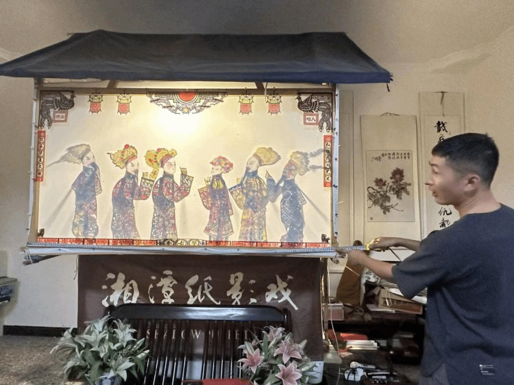 当被问到当前纸影传播的主要方式时,纸影非遗传承人吴升平先生表示,近些年传承人们一直在探索宣传和发扬湘潭纸影文化新途径,期望通过多种渠道和方式,有效宣传湘潭纸影文化,扩大湘潭纸影文化的影响。现今主要的传播方式有非遗进校园,非遗进社区、进景区,以及通过线上直播平台开展的国内外交流活动,同时针对更小年龄层次的小朋友开发半成品内容。对于非遗进校园,其孙吴渊老师称:“我们做中小学教本课程、社团课程的尝试,已经形成了一个非遗品牌,并在积累的这么多年的基础上,编辑了相关教材,开发了相对应的材料包。”