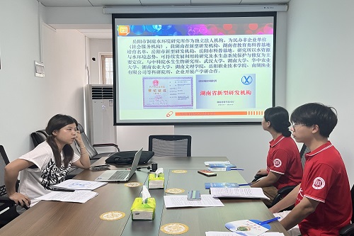 在拜访完河长办公室之后,实践团成员们来到了岳阳市洞庭湖水环境研究所,面见了水环境研究所的何婷主任。她带领成员们参观了研究所的会议室、实验室、研究室,并介绍了研究所在洞庭湖水环境治理中起到的作用。接着,成员们来到了会议室观看水环境研究所的宣传ppt,实践团成员们了解到南湖最严重的水质问题就是蓝藻的爆发,水环境研究所针对这一问题刻苦钻研,研究出了叶绿素卫星光谱蓝藻爆发预警机制,获得了多项发明专利,在蓝藻爆发问题治理上不可或缺。同时,在与研究所的何主任以及其他工作人员的交流下,成员们更加深刻的体会到洞庭湖五年蝶变离不开无数工作人员在背后的默默付出,没有他们,就没有今日的洞庭湖。
