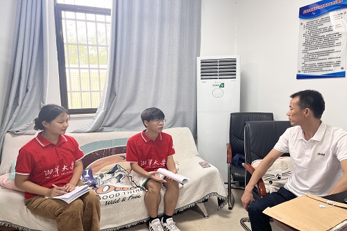 图为实践团成员在南湖新区管理委员会河长办调研学习