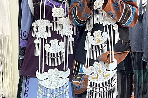 彝族银饰是中国彝族民族传统的珠宝饰品,具有精美的工艺和独特的文化内涵。其制作历史悠久,可以追溯到数千年前的新石器时代。彝族银饰不仅是彝族人民的传统装饰品,也是中国文化遗产中的重要组成部分,表现了彝族人们对大自然的崇拜、感恩和敬畏之情。然而,随着现代工艺的快速发展,由于生产周期和成本的考量,越来越多的机器制作逐渐在挤压饰品制作的手工艺人的市场,再加上按照彝族银匠传统,这门技艺只能传给本家族的人,而且传儿不传女,极少外传,从而导致越来越少的彝族年轻人继承传扬工艺,这种锻造技艺文化的发展已经面临着没有传承人的困境。实践团实地考察彝族服饰及银饰文化现状,采访当地彝族服饰、银饰店老板,思考让彝族传统手工艺人在快速机器制造的市场中发挥自己独特优势的方法。
