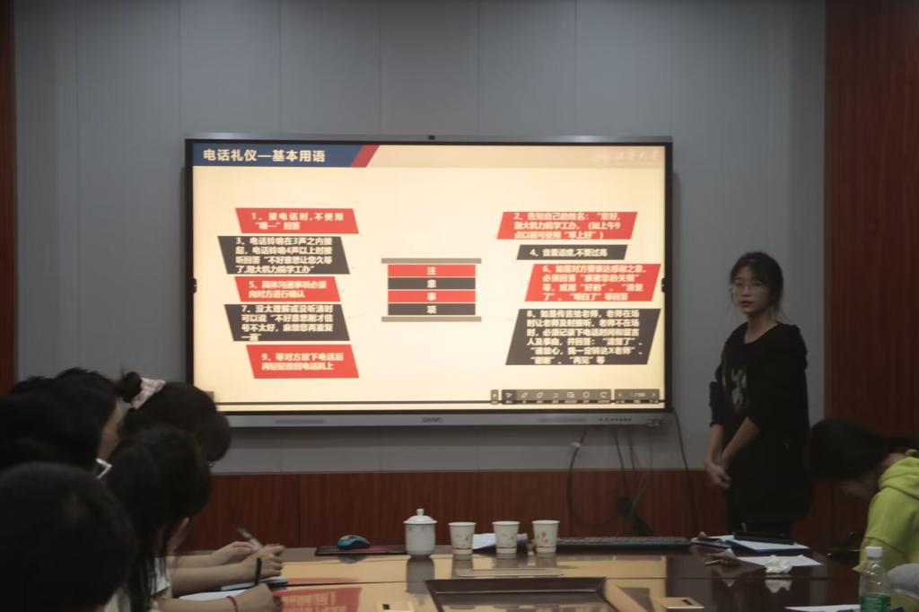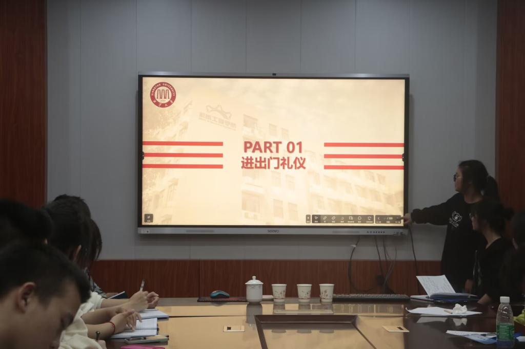 讲座第二部分,由学工助理为大家介绍工作生活中常用的礼仪,其中包括进出门礼仪、电话礼仪、会议礼仪等办公室礼仪以及引路礼仪、握手礼仪、餐桌礼仪等生活常用礼仪,培训过程中将各个礼仪细致化,形象化。绅士仓库 通过观看视频,了解实例充分认识到礼仪在生活工作中的重要性,让基本礼仪走进绅士仓库 的日常生活。