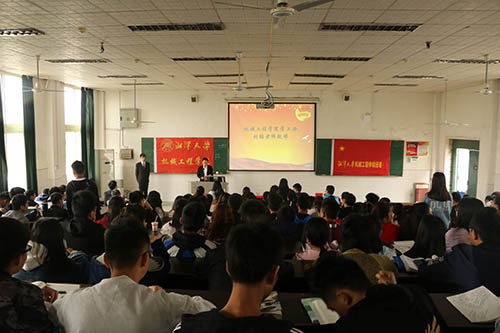 之后,由信息工程学院的刘行老师为我们进行第一次授课,他带领同学们一起学习并深入了解了党的十九大有关知识以及十九大报告中的关键字。刘行老师指出,我们今天要讲的内容包含一个主题,两个关键字,三个问题。一个主题即“拥抱新时代,担当新使命”,两个关键字即“新时代”和“新使命”,三个问题即“新时代是个什么样的时代”,“如何理解新时代赋予青年的新使命”,“新时代的青年,如何践行新使命”。带着这三个问题,刘行老师与同学们一起进行了探讨和学习。刘行老师强调,作为新时代的新青年,我们要学会担当,其实担当并不遥远,可以从遵纪守法做起,从关爱身边的人做起,从勇于承担社会责任做起,从多做实事多做好事做起,面对身边的每个人,遇到的每件事,手头的每份工作每项任务,扮演的每种社会角色,都有担当与否的选择。最后,刘行老师引用《少年中国说》中的“故今日之责任,不在他人,而全在我少年”来强调了青少年对社会和国家起到的重要作用。