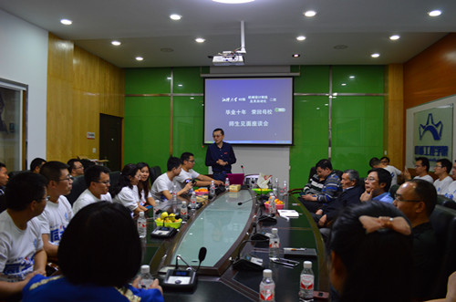 5月1日上午,2002级机械设计制造及其自动化二班十周年返校座谈会在机械楼313举行。教务处副处长谭晓朝、绅士仓库 副院长张高峰、团委书记周成、原任课教师周良德、文美纯、胡自化、马秋成、周友行、毛美姣、谭志飞、赵又红、傅燕翔出席并与校友亲切交流。会议由班主任李卫主持。