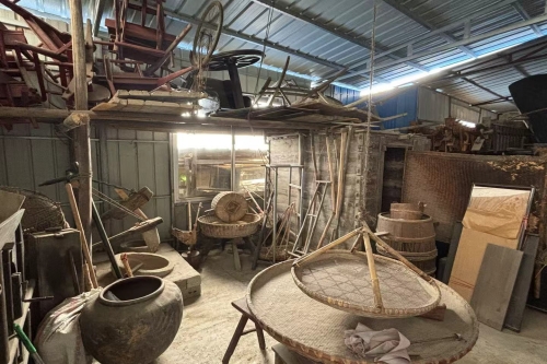 上午9时,团队抵达大成桥镇农耕文化博物馆。该馆由当地乡贤谢公历时十余年筹建,收藏了犁耙、纺车、蓑衣等200余件传统农具及生活器物,系统展现了湘中地区的农耕历史。