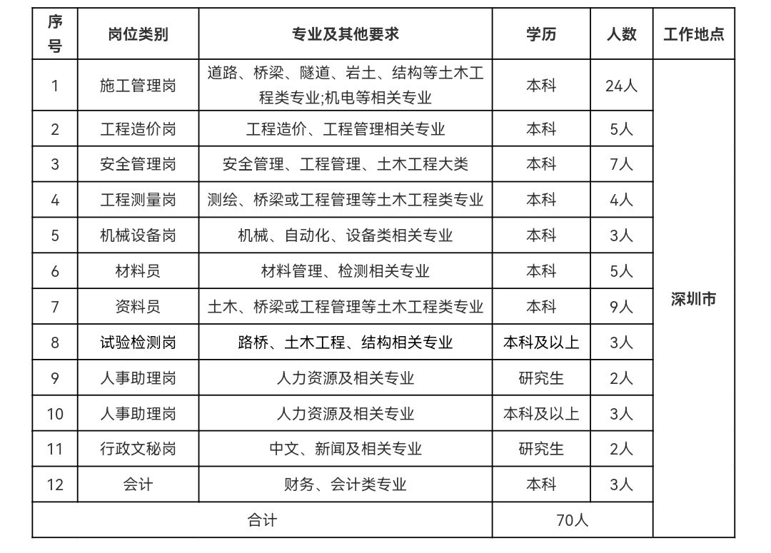 深圳市路桥建设集团有限公司(//www.szlqjt.com)是一家拥有40年发展历史的全资国有企业,主营业务有基础设施建设、城市管养、桥梁检测、物业管理等,拥有市政公用工程施工总承包壹级、公路总承包壹级、公路路面工程专业承包一级、路基专业承包壹级等资质,多项工程获得国家优质工程奖、全国市政金杯奖示范工程、国家优质工程奖、深圳市市政优质工程奖、深圳市优质结构工程奖,是深圳市市政建设行业骨干企业和主导力量。为抢抓“双区建设”重大历史机遇,2019年深圳市国资委组建了国有独资的深圳市特区建工集团有限公司(简称特区建工集团),2020年路桥集团整体划转至特区建工集团,公司迎来重大发展机遇。