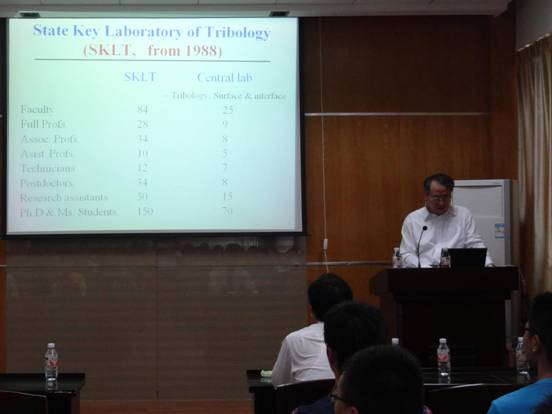 清华大学雒建斌院士做了题为“纳米制造技术”的学术报告。雒院士从纳米结构的制造、纳米精度的制造、系统集成三个方面讲解纳米制造技术,并阐述了纳米切削、磨削、抛光等专业技术问题及其在计算机硬盘和集成电路领域的应用。报告拓宽了师生的视野,激发了大家深入学习纳米技术的兴趣。