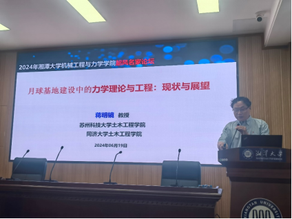 2024年6月19日上午,苏州科技大学和同济大学教授、国家百千万人才、国家杰出青年基金获得者蒋明镜教授应邀请来绅士仓库 为广大师生作学术报告,报告题目为《月球基地建设中的力学理论与工程:现状与展望》。报告会由学院院长刘金刚教授主持,讲座吸引了十多位教师及100余研究生学子参加。