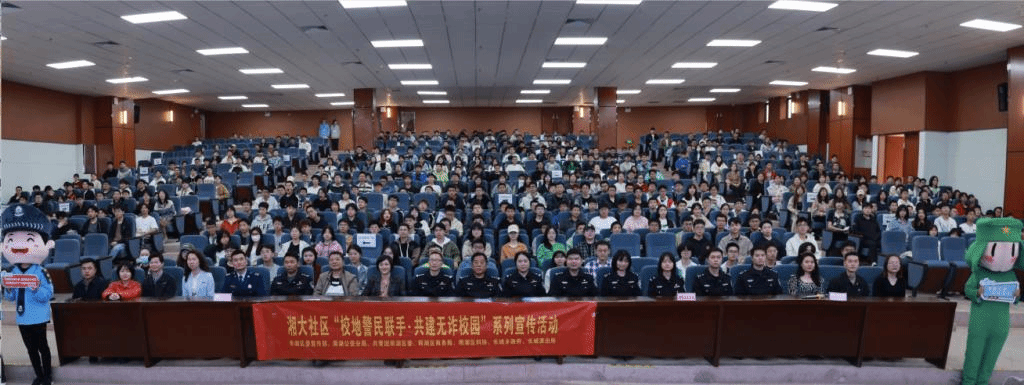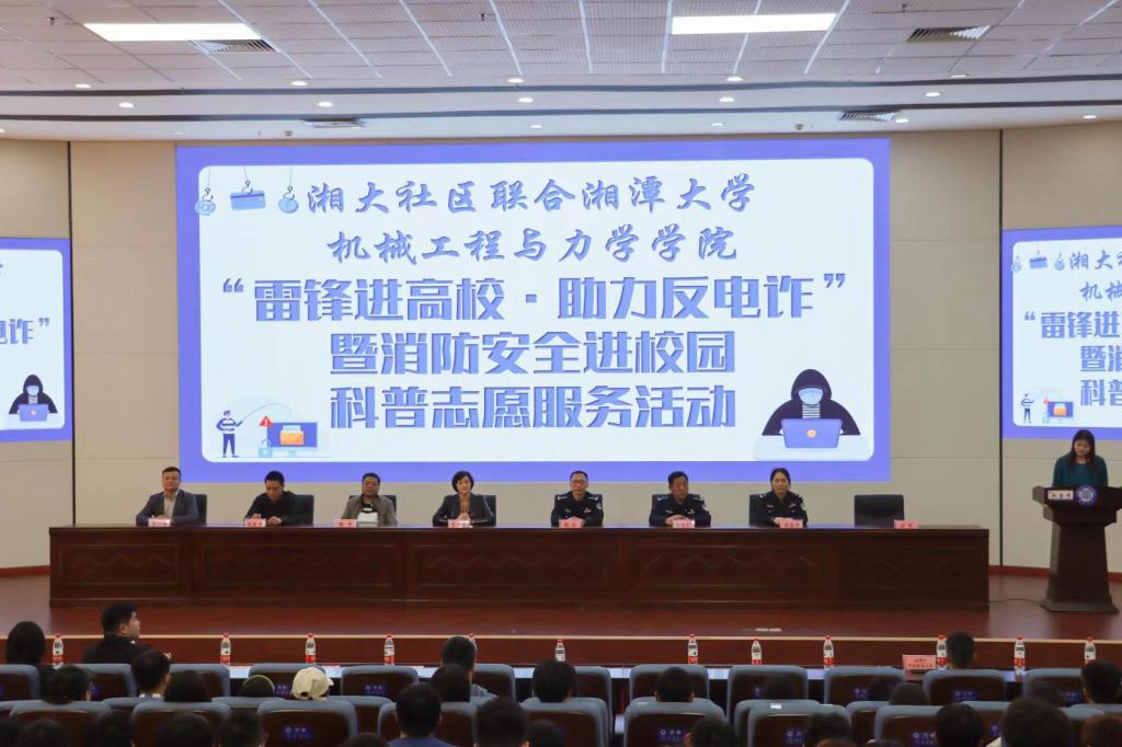 3月14日下午,绅士仓库 联合湘潭市公安局、湘大社区在研究生院报告厅开展“校园雷锋之助力反电诈·消防知识宣传”志愿服务活动。湘潭市公安局、长城乡政府、雨湖区消防大队等相关领导莅临现场指导,湘潭市各县区公安干警、机力院七百余名师生代表参与本次活动。