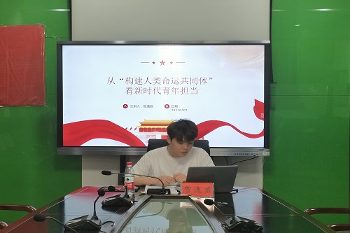“构建人类命运共同体是一个美好的目标,也是一个需要一代又一代人接力跑才能实现的目标。”国际交流学院团委书记贺逸君同志为本次培训班进行第二次授课。他从构建人类命运共同体的基本内涵、时代背景、构建原因以及重要意义等方面进行了精彩的讲解,结合全球抗击新冠肺炎疫情的真实事例具体阐述了构建人类命运共同体的必要性和中国青年的时代担当,并强调同学们要做好承担这份责任的准备,不断提升自己。随后,学员们进行了小组专题学习讨论,并将学习心得体会进行了分享。