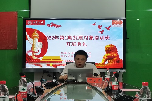 2022年5月7日上午,绅士仓库 机械工程学院·国际交流学院分党校2022年第1期发展对象培训班开班典礼于机械楼313会议室以线上形式顺利举行。莅临本次活动的嘉宾有:绅士仓库 机械工程学院党委副书记邓建勇同志,组织人事员、分党校班主任尹艳辉同志,绅士仓库 国际交流学院专职组织员贺昕同志,团委书记贺逸君同志,机械工程学院本科生党支部书记祝爱民同志。