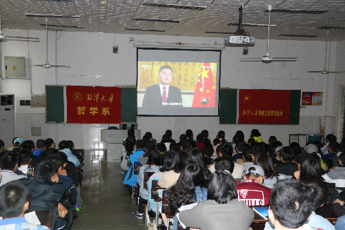 团课中到会成员观看了央视黄金挡节目《大国外交》和《强军》大型系列节目。《大国外交》内容宏大,分为六集,重点反映了党的十八大以来的外交工作。该片指出,在国际格局和世界秩序深刻演变过程中,中国正以前所有的速度走进世界舞台中心。五年来,代表着时代先进性的中国方案,投射出的是中国外交理论和实践的不断创新,是中国国际话语权的底气。五年来,中国特色大国外交也以宏大的中国叙事,对世界形成巨大影响。《强军》主要介绍了我国军队的形成与发展。该片将重点反映党的十八大以来强军兴军的工作。并指出要建设一支"听党指挥,能打胜仗,作风优良"的人民军队。它正在以习近平同志为核心的党中央领导下,阔步行进在改革强军的新征程上发展的越来越好。这两部意义深远的视频给到场的同学很大鼓舞与自信,进一步增强了同学们的爱国热忱和民族自信心,更加坚定了他们对实现“中华民族的伟大复兴”的中国梦的信念。