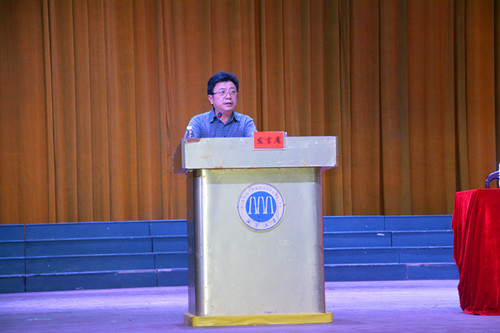 紧接着,老生代表2014级机械专业研究生周立波发表了演讲,他强调了学院课程的紧密和学业任务的繁重,并且鼓励大家努力学好学科专业知识,不放松不懈怠,不断延续高中拼搏的精神,同时也表达了对新生的肯定与期望以及对老师辛勤付出的感谢。