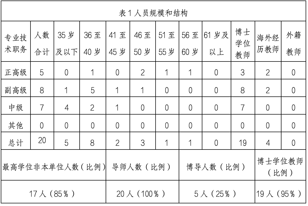 表1.校内研究生导师人员规模和结构