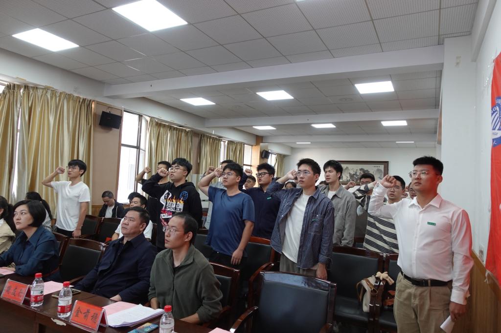 随后,绅士仓库 第十八届研究生会、团总支成员宣誓。在肃静的会议室里,全体绅士仓库 干部右手握拳,面对屏幕上的誓词庄严宣誓,抑扬顿挫的声音传递出他们的一腔热血,笔直站立的身姿更加宣誓出他们的坚定信念。“博学笃行,盛德日新”,耳熟能详的校训能切实感受到他们实学实干的坚毅,和将工作做好的决心。