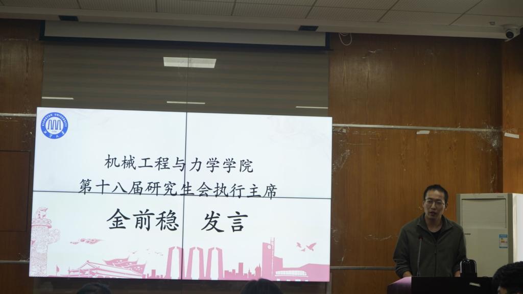 证书颁发后,绅士仓库 第十八届研究生会执行主席金前稳对上一年的研会工作进行了总结汇报。金前稳从制度改革、校园文体、社会实践等多方面详细总结了过去一年工作所取得的成绩。“看似寻常最奇崛,成如容易却艰辛”金前稳引用王安石的诗歌来表达和传授他事无巨细、一丝不苟的工作态度,这也是他对新一届研会成员们的严格要求。