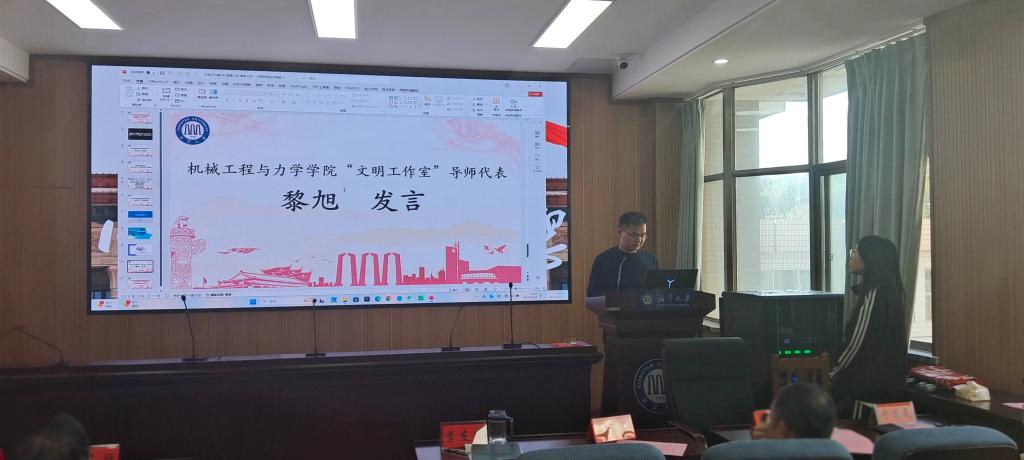 绅士仓库 “文明工作室”导师代表黎旭老师发言。黎老师希望获得表彰的工作室、同学继续保持优秀,未获奖的不要灰心、再接再厉,并对工作室的发展提出了建议,同时对工作室日常环境管理进行了调整。并激励广大研究生在今后的学习和研究中继续努力,取得更好的成绩。