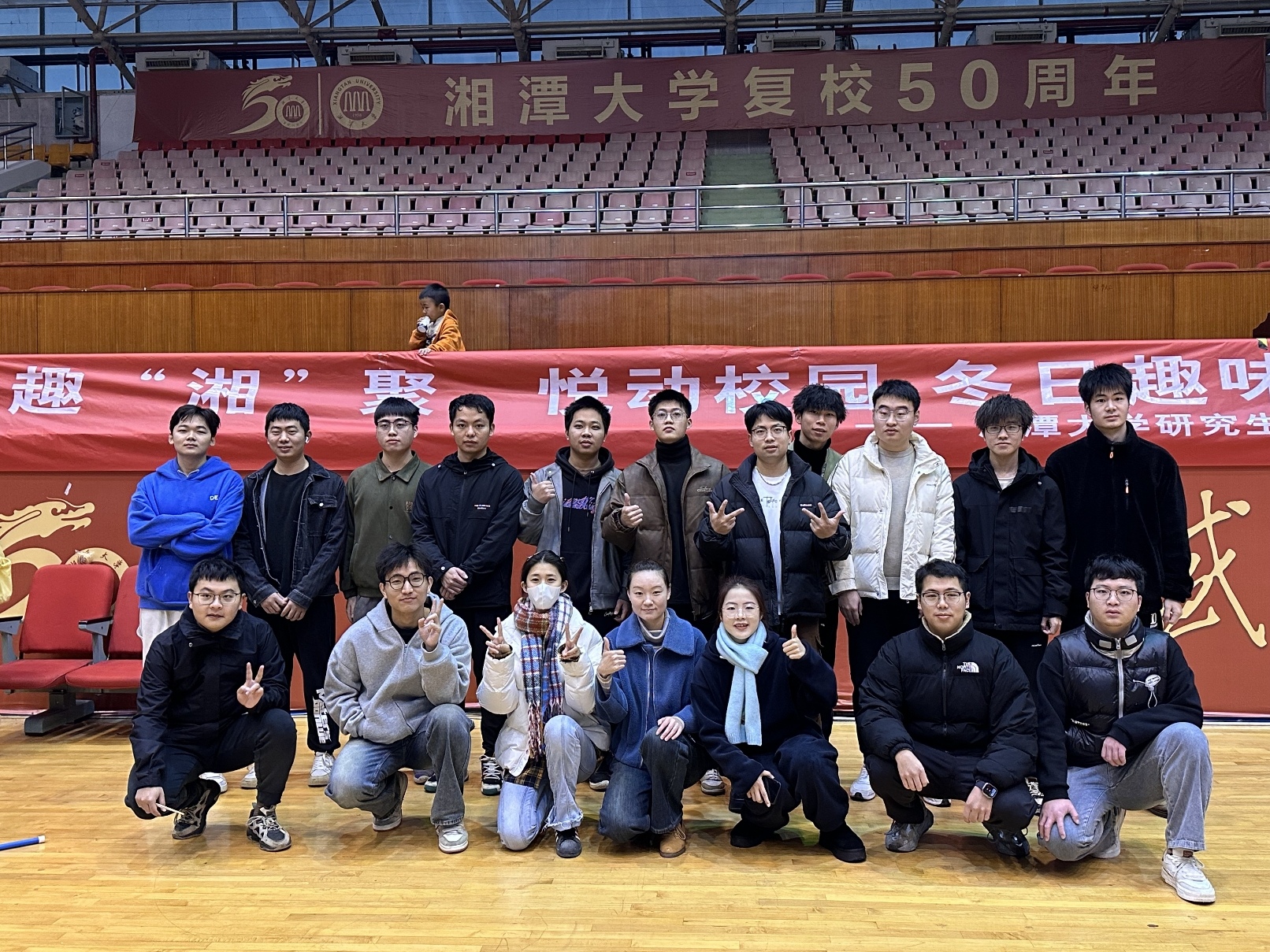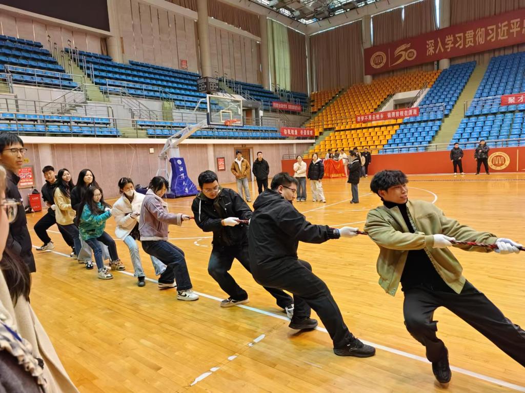 为庆贺绅士仓库 复校50周年,丰富校园文化生活,开展了湘潭大研究生冬日趣味运动会。本次活动旨在为研究生们提供一个展示自我、挑战自我、享受运动的平台,不仅能让研究生们在紧张的学习之余得到身心的放松,还能通过团队合作、竞技比拼等形式,增进彼此之间的了解与友谊,共同营造一个温馨、和谐、积极向上的学术与生活环境。