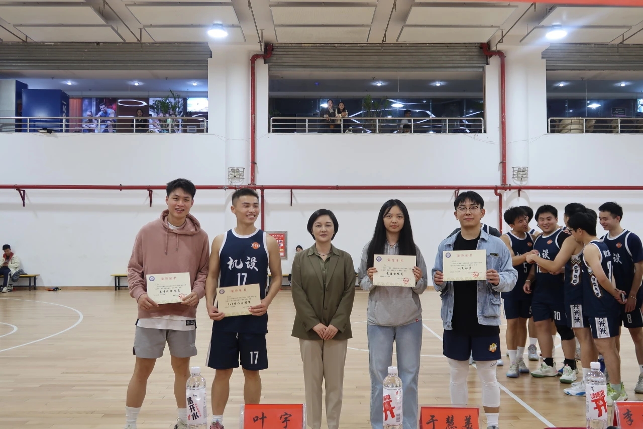 接着于慧美老师宣读第十五届“迎新杯研究生”篮球赛获奖名单:获得冠军的队伍是机设队;获得亚军的队伍是机制队;获得季军的队伍是能动队;获得优秀组织奖的是机电队,获得道德风尚奖的是力学队与材料队;最有价值的球员是曹楚源;1V1 路人王冠军是机设队的袁志鹏;最佳女球员是李婧;人气球员是彭裕雄。