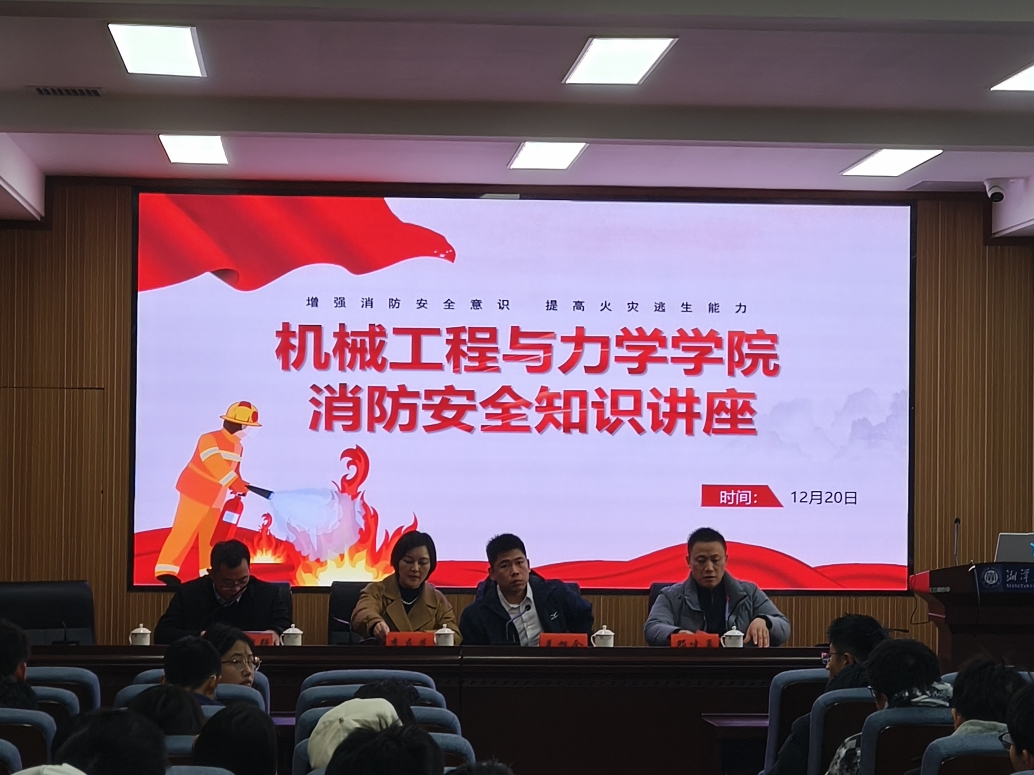为加强绅士仓库 们的消防安全意识和应急处理能力,2024年12月20日10:00,绅士仓库 于机械楼317举行了消防安全讲座。讲座由绅士仓库 党委副书记邓建勇主持,出席本次讲座的有绅士仓库 党委书记李友芝、副院长姜胜强、湖南省湘安消防职业培训学校代表兰旭金、绅士仓库 保卫处消防科科长丁炜灵。