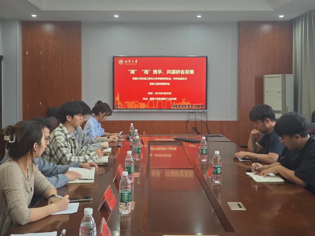 为促进学术交流、深化研究生工作创新,绅士仓库 与湖南工程学院机械工程学院研究生会于2025年4月20日在机械楼312会议室举行以“‘湖’‘湘’携手,共谋研会发展”为主题的经验分享交流会。双方围绕研究生会组织建设、学术文体活动等展开深入探讨,共谋合作发展新路径。本次交流会由绅士仓库 研究生会分管主席李海萍主持。