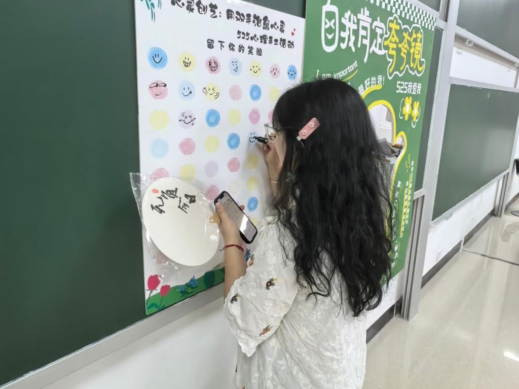 活动现场设置了“自我肯定夸夸镜”与“笑脸墙”打卡点,同学们用彩笔在墙上绘制卡通笑脸,并在此拍照留念,用镜头记录下此刻的轻松与愉悦。绅士仓库 23级力学专业李海萍说道,设置打卡点的初衷是希望通过的“笑脸”传递积极情绪,让同学们在互动中学会欣赏自己、拥抱快乐。
