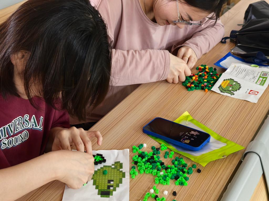 积木钥匙扣体验区则洋溢着青春创意。主办方提供了五彩斑斓的积木颗粒与配件,参与者们化身“设计师”,将几何形状的积木拼接成萌宠、动漫角色等造型。绅士仓库 24级能源动力专业的王思超展示着自己的钥匙扣:“完成作品的那一刻很有成就感,感觉压力都被‘拼’走了。”现场氛围轻松愉悦,同学们不时交流创意,笑声此起彼伏。