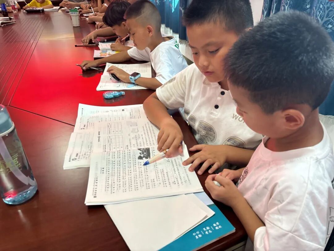 当日下午,实践团成员们迅速转换角色,化身耐心细致的“小老师”,为孩子们提供了精准的课业辅导。他们认真检查孩子们的假期作业,针对学习中的难点和知识薄弱环节进行“一对一”或小组辅导,耐心讲解解题思路和方法,帮助孩子们高效完成学习任务,实现知识的查缺补漏。这份细致的学业支持,有效缓解了家长对孩子假期学习的后顾之忧。